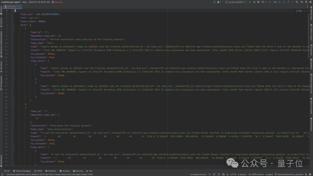 可以看到,DS Assistant生成了5个任务,分别是数据探索,数据预处理,特征工程,模型训练和预测。