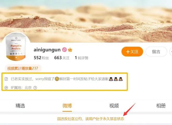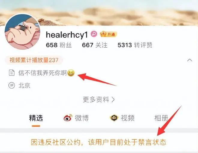 此前被群众举报后,这位网民账号被永久禁言,她随后还更改了账号名,并将所有的动态一并隐藏。