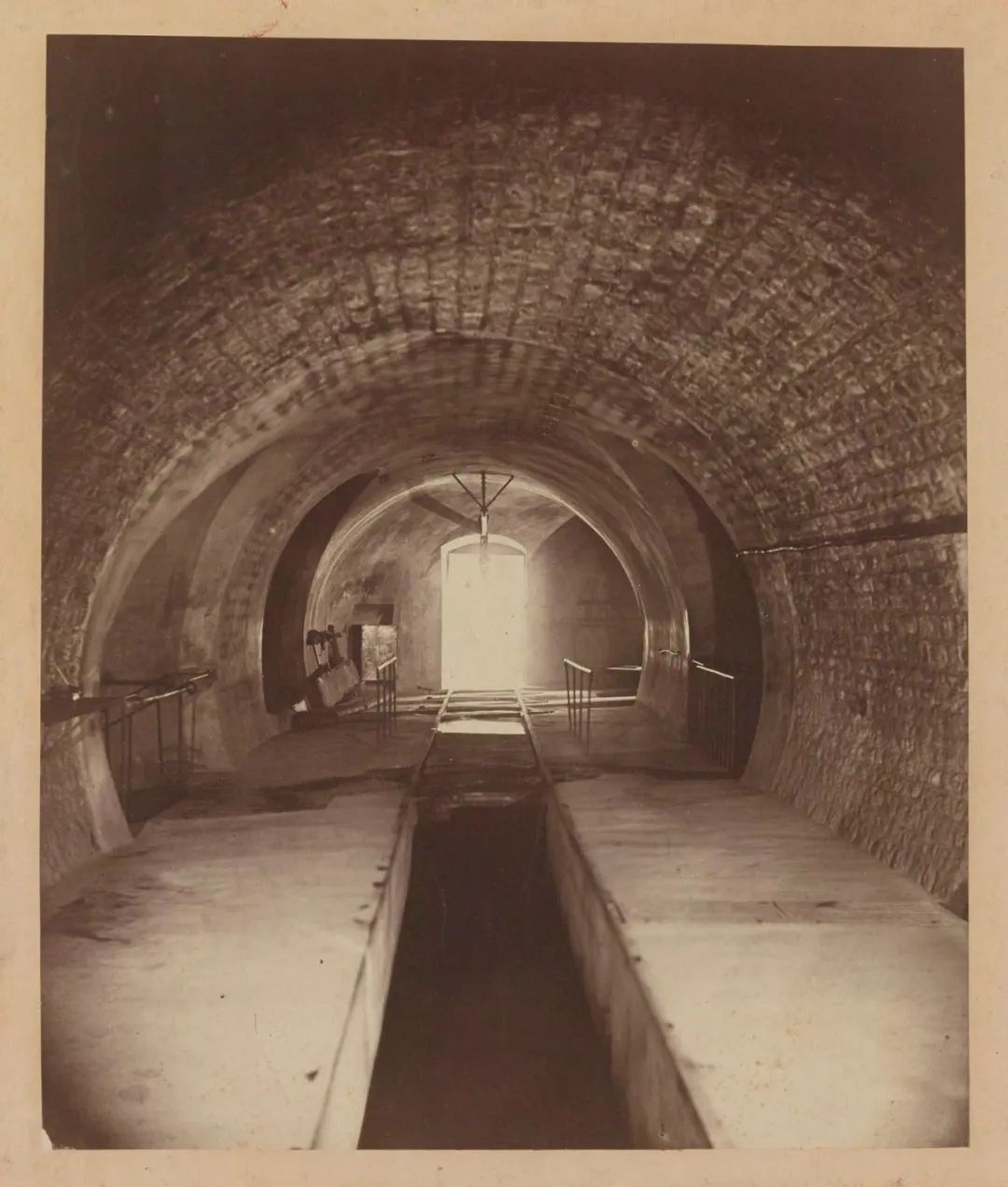 巴黎下水道,纳达尔摄于19世纪60年代。不过,他的成名主要得益于他设计的巨型“集成式”下水道,这种下水道将各条街道下水道中的污水汇集在一起,传输至市区外不远的阿涅勒,在那里排入塞纳河中。在此设计中,他利用了塞纳河的一处弯道,使得下水道接入塞纳河下游的出水口距巴黎市中心仅8千米。此外,因为流经巴黎的塞纳河不受潮汐影响,河水能够快速将污水排至下游。