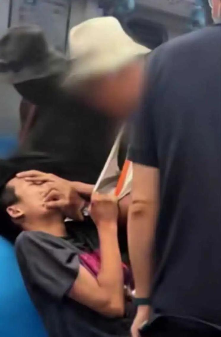青岛地铁一小伙遭老人殴打后口鼻出血,警方已介入处理