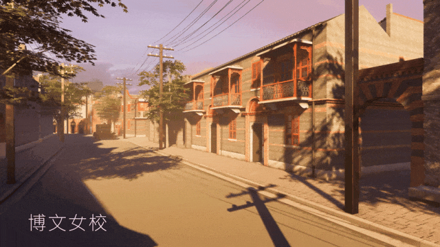 大空间VR场景—博文女校第二类场景构架方式是种创新,是影像和空间的并置。其实这种表达手法我一开始一直不敢用,特别是一大会议纪实这幕,因为一大代表的虚拟人设计是一个庞大的工程,且需要经历层层审批,从建模到审核成功预计耗时不少于一年,甚至有可能无法通过。我们考虑过用油画作品来表达开会的那几天,但效果也不理想。
