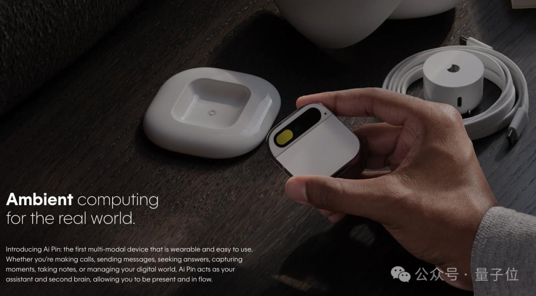 据介绍,这款AI Pin支持语音交互,可以访问ChatGPT,同时内置摄像头和多种传感器,能够进行环境交互。