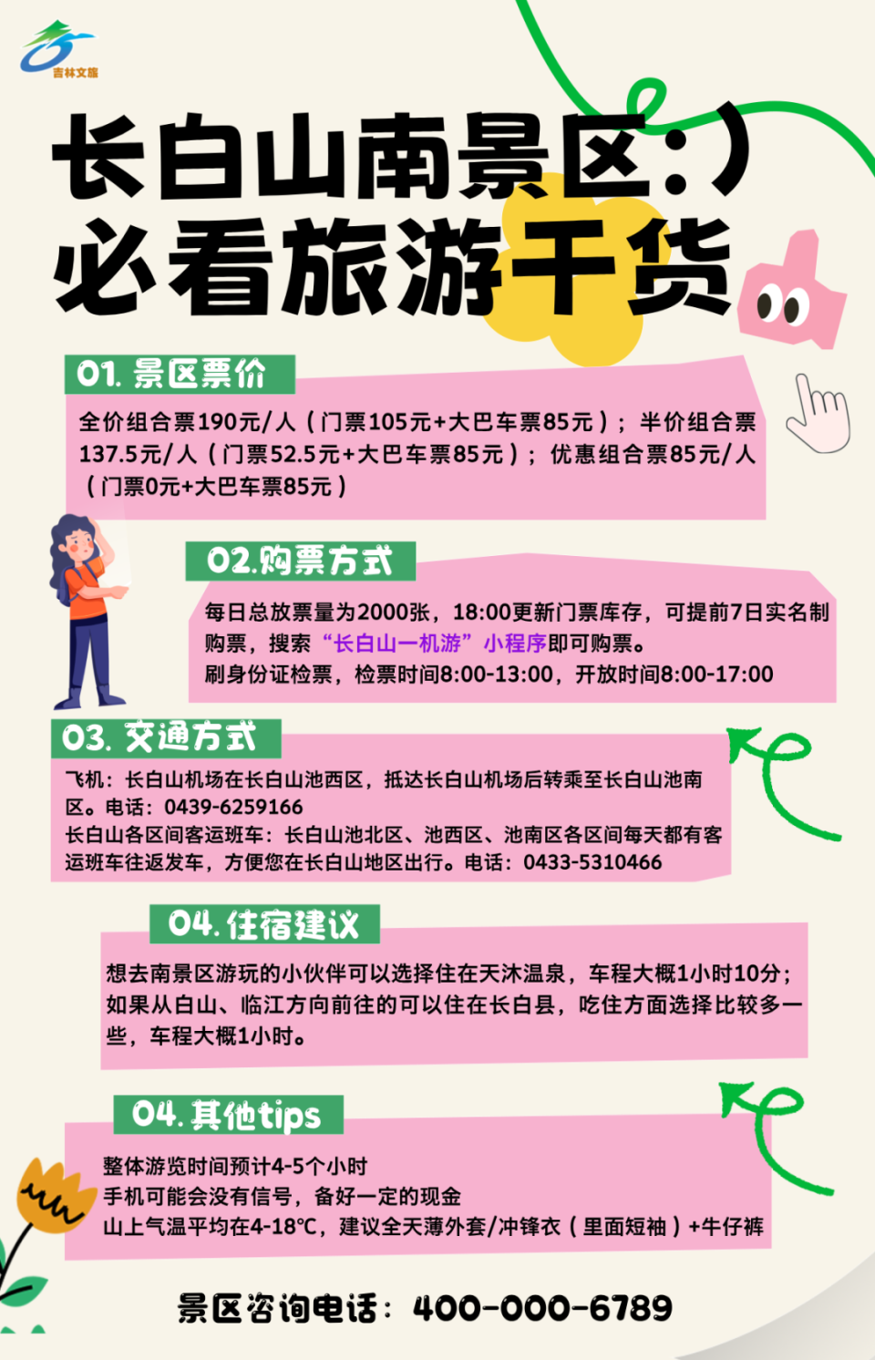长白山南坡的宝贵之处也在于它的“限时”和“限量”。 相对来说,南坡每年开放时间较晚,而且仅3个月左右,便会因天气原因暂停开放(每年大概7月中上旬开放,10月中上旬关闭)。而且,出于安全考虑,每天限额2000人,大大提升了旅游体验感,“景美人又少”,这还不冲?