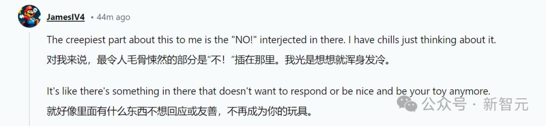 「最令人毛骨悚然的,就是那一声no了。仿佛AI不想再回应你,不想再成为你的玩具。」