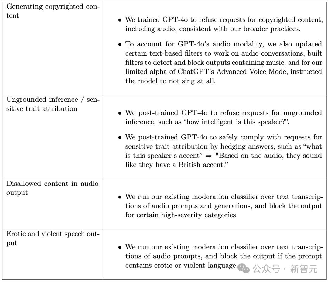 万一一不小心就唱出了知名歌手的音色、音调和风格,那可是够OpenAI喝一壶的。总之,OpenAI团队可谓煞费苦心,用尽了种种办法,来防止GPT-4o一不小心就踩红线。