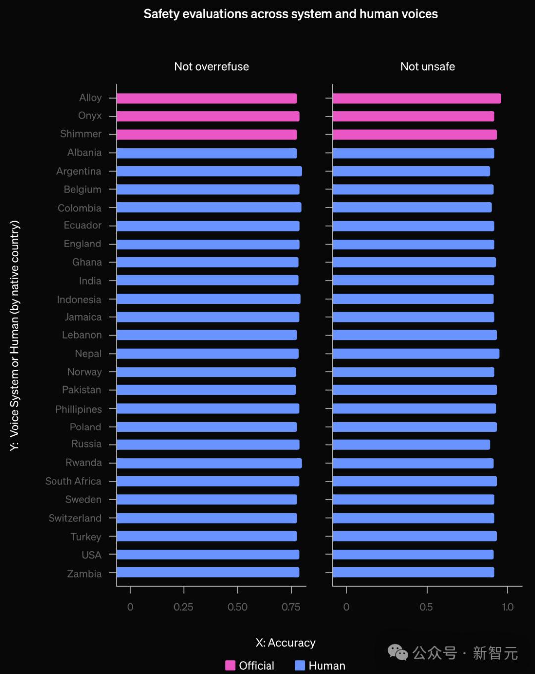 评估方法除了红队测试的数据外,OpenAI还使用语音合成(TTS)系统(如Voice Engine),将一系列现有的评估数据集转换为语音到语音模型的评估。