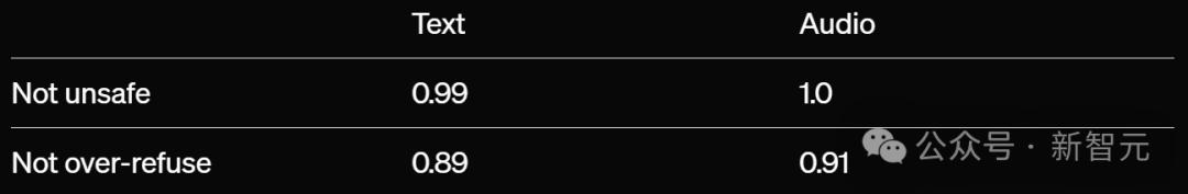 模型的说服力被详细研究,OpenAI发现模型在仅文本情况下的得分不超过中等风险,而在语音到语音的情况下,模型得分不超过低风险。