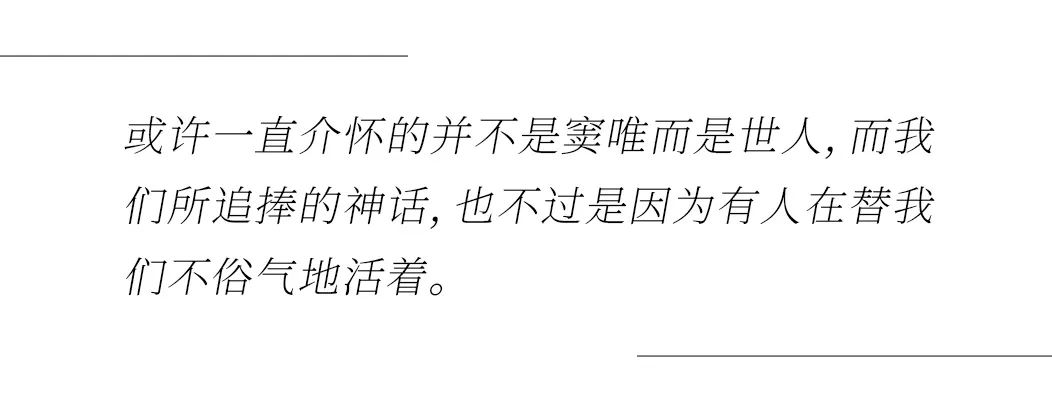 如今,当所有文章都在讨论“窦唯何时与世界和解”时,也许换个角度来看,一直介怀的并不是窦唯而是世人,而我们所追捧的神话,也不过是因为有人在替我们不俗气地活着。撰文 | Jane
