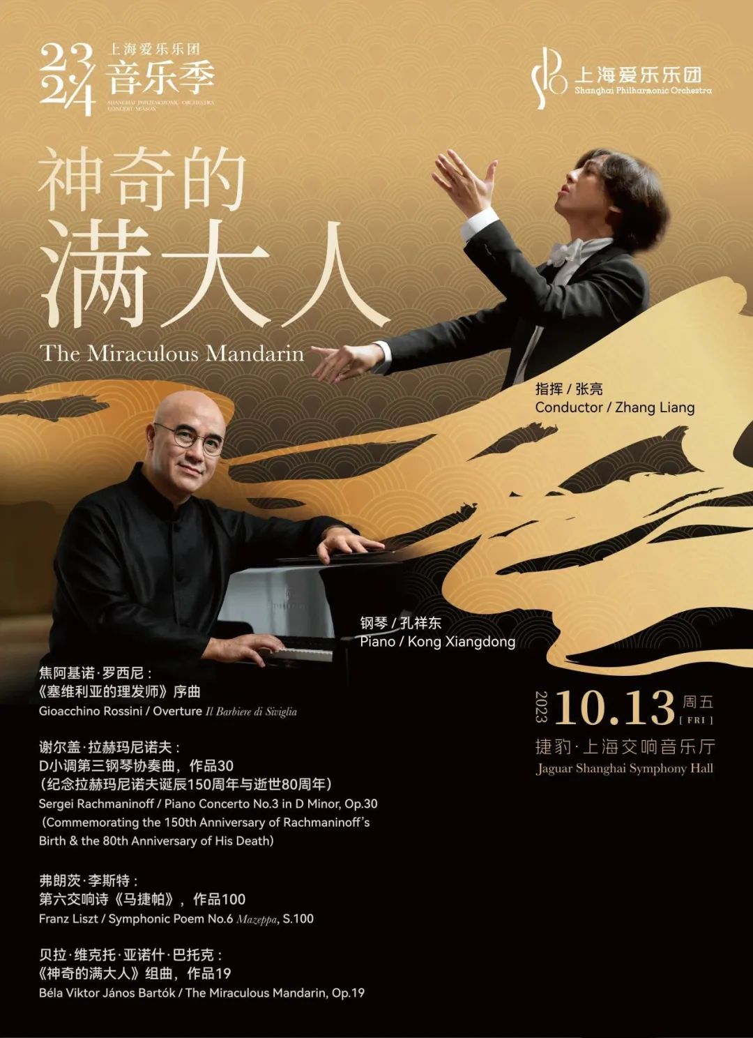 由副团长、常任指挥张亮执棒的上海爱乐乐团,携手钢琴家孔祥东,共同向钢琴协奏曲难度巅峰“拉三”发起挑战,献演「神奇的满大人」音乐会。音乐会开场按惯例是一首短曲,本场便演奏的是意大利作曲家罗西尼的歌剧《塞维利亚理发师》序曲。紧接为纪念拉赫玛尼诺夫诞辰150周年与逝世80周年,上演了被称为“钢琴协奏曲之王”的《第三钢琴协奏曲》。
