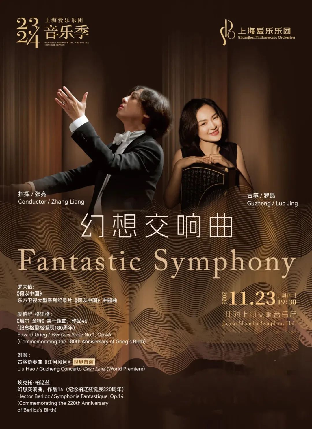 2023年,柏辽兹诞辰220周年与格里格诞辰180周年之际,副团长、常任指挥张亮执棒乐团,携手筝演奏家罗晶联袂呈现。两部中国原创新作的首次亮相与两部为纪念作曲家诞辰而重温的西方经典交替上演,成为本场演出令人记忆犹新的一幕。开场,罗大佑受东方卫视大型系列纪录片《何以中国》创作团队之邀,为其构思写作纪录片的主题曲,作为音乐会演奏曲是首次在舞台上呈现,作品围绕以影像溯源历史、探寻中华文脉这条主线,在传统的西洋乐队里加入了具有中国特色的民族乐器竹笛、箫和古筝,以此凸显隐约的地域性与历史感。