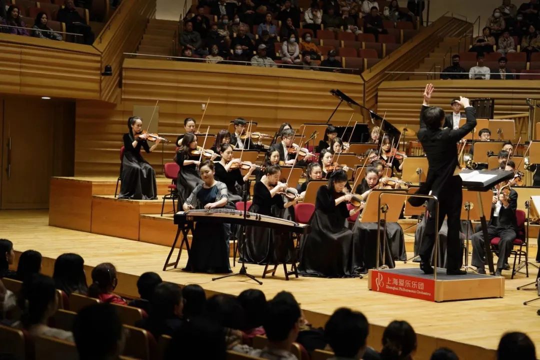 由上海音乐学院民族音乐系系主任、作曲家刘灝创作的古筝协奏曲《江河风月》是本场音乐会上的第二个首演作品,以诗歌般的音乐语言,融合江南音乐的特点,用古筝与管弦乐队相结合的形式,将江南音乐、海派音乐的创作元素与管弦乐的音响风格形成呼应交融。上海音乐学院古筝教授罗晶的演奏沉稳大气,技巧娴熟,很好地诠释了作品所要传达的主旨内涵。