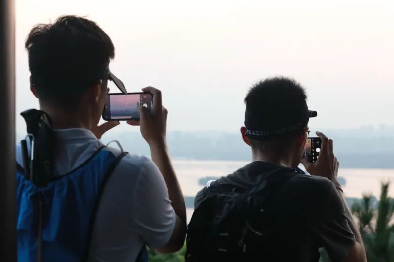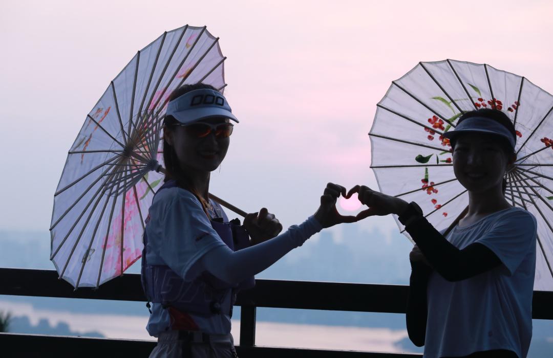 这么紧凑的特种兵式跑步,跑友们却跑得很带劲。5点多登上三台阁,就能见证西湖日出,这也是一天中最浪漫的时刻。有女生还带了西湖绸伞,美美cos了一波白娘子。