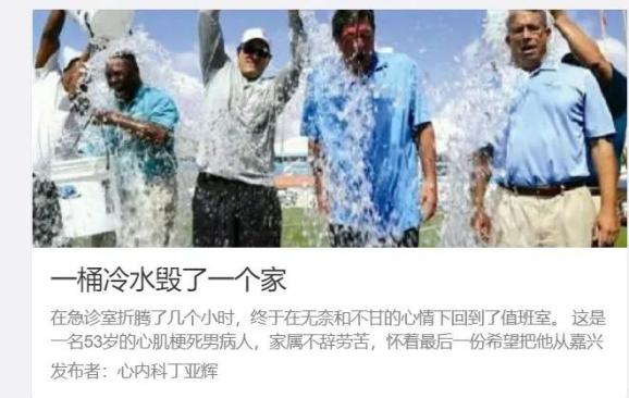 2015年,浙江省人民医院心内科的主任医师曾发过一条让人唏嘘的微博《一桶冷水毁了一个家》。这场悲剧的开始,只是一桶想用来消暑的冷水。