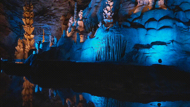 洞穴深邃,石笋林立,光影斑斓