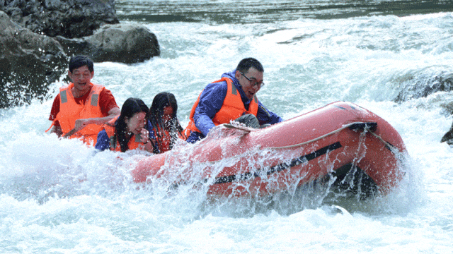 一起玩峡谷漂流坐上皮筏,来一场峡谷漂流