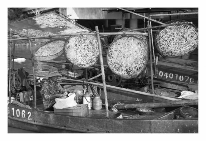 2009年2月7日 ,渔民在船上为家人准备晚餐。