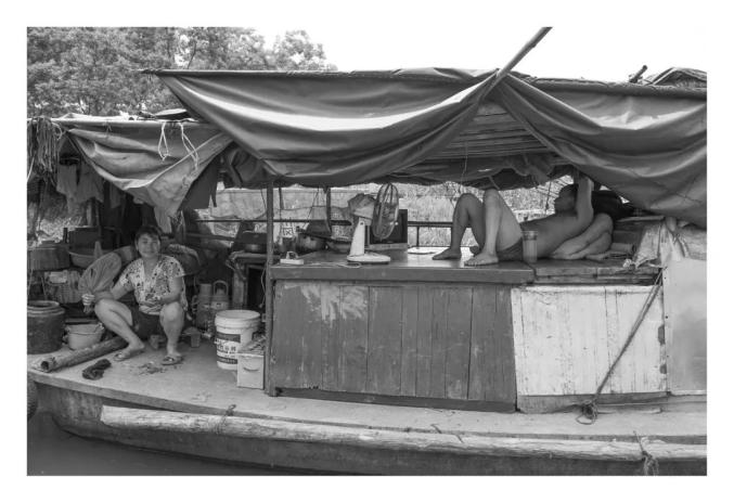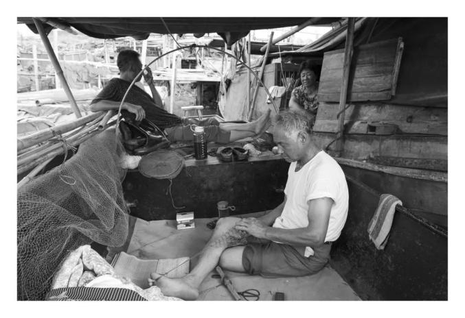 2011年6月26日,渔民夫妇在船上的闲暇时刻。