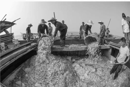 2011年9月6日 ,银鱼丰收时节,渔民在劳作。
