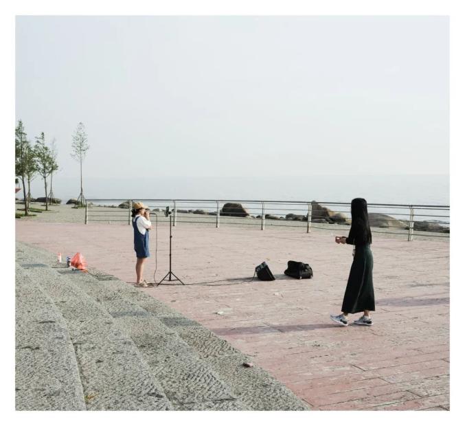 2023年5月16日,太湖边开直播唱歌的小姑娘。