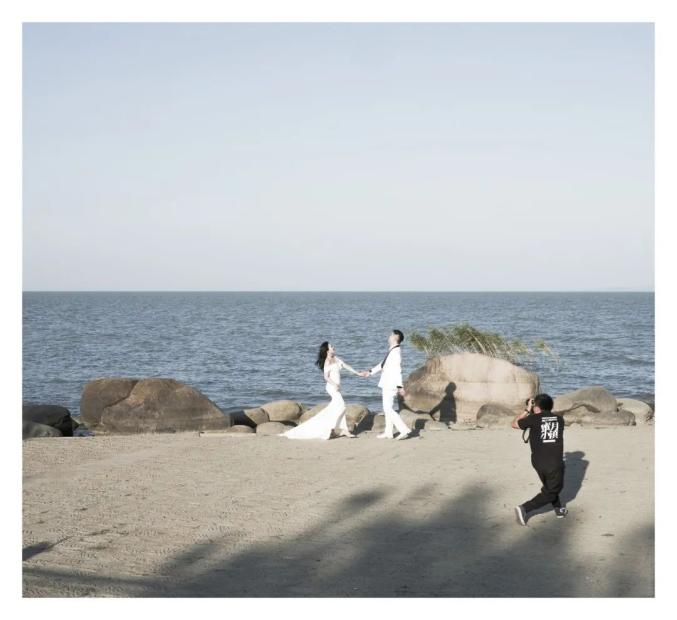 2021年10月4日,影楼摄影师在为一对情侣拍摄。