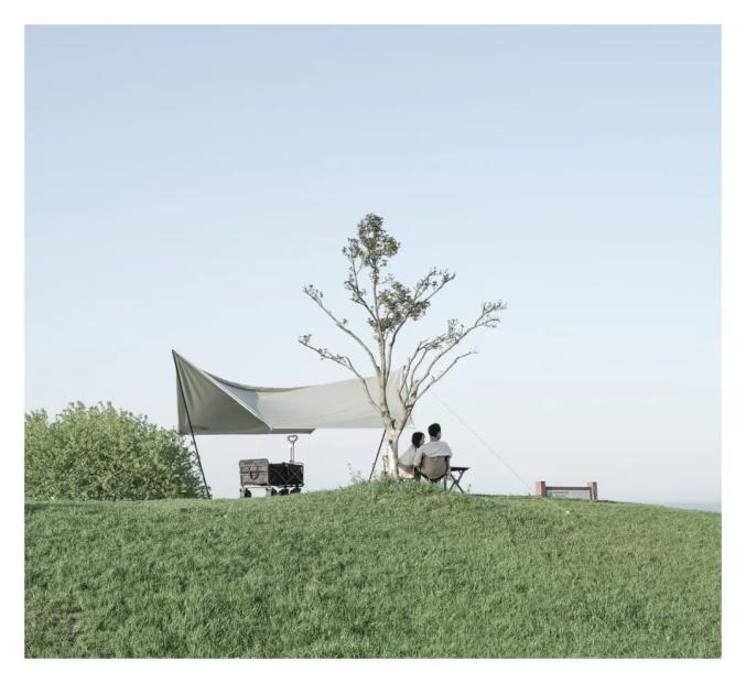 2021年10月4日,烈日下的太湖边,休息椅上遮阳伞。