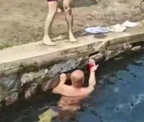 据现场目击者描述,当时他只是经过想记录男子跳水,结果没想到竟看到意外一幕。男子的头上破了一个小口子,旁边的人赶紧给他找纸包扎,之后男子就去医院治疗了。