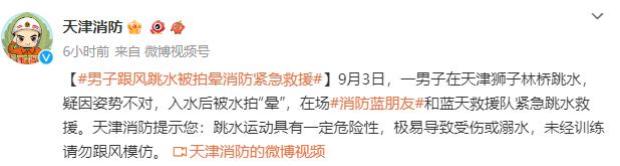 天津消防连续接到有人因跳水被水拍“晕”的警情