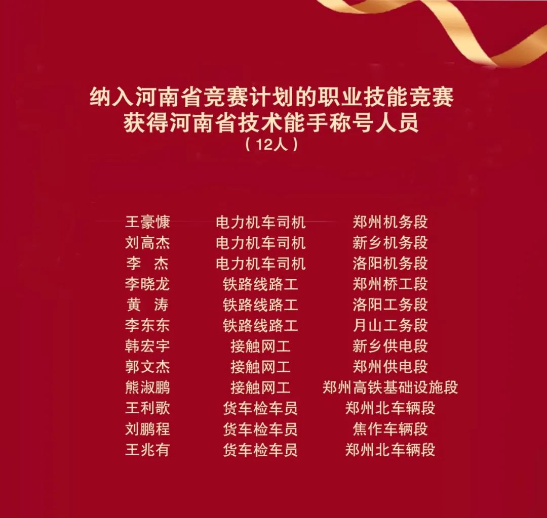 河南省技术能手人员名单