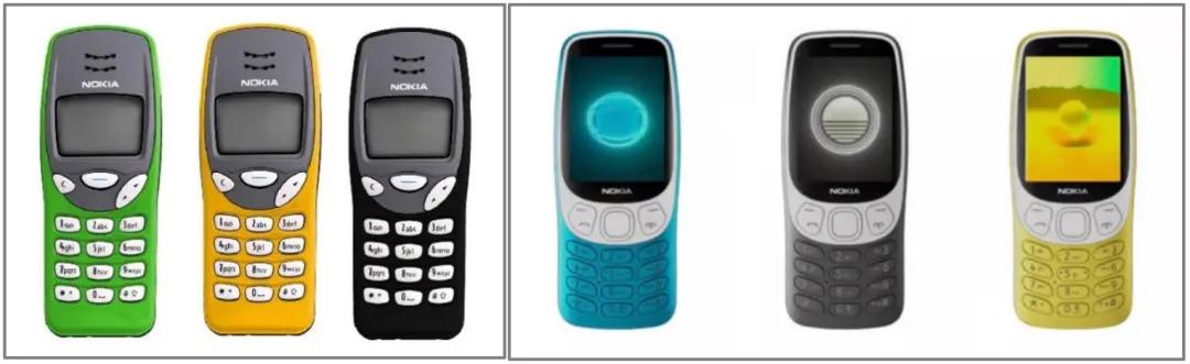 1999年(左)和2024年复刻(右)的诺基亚3210系列结果上市当天,诺基亚3210复刻版瞬间售空,第二天的补货也在30分钟内售罄。