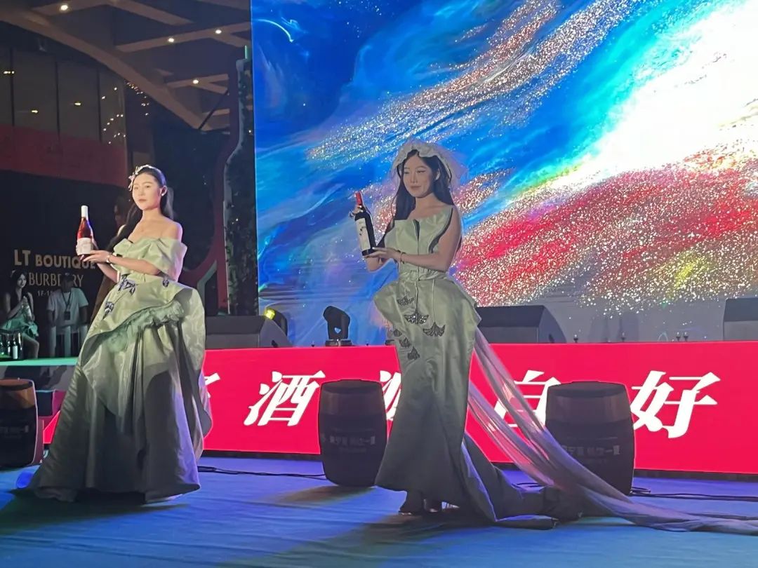 银川市“来宁夏 畅饮一夏“活动现场,模特展示葡萄名酒。