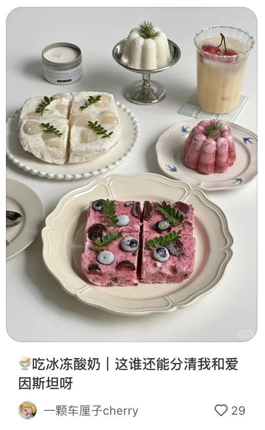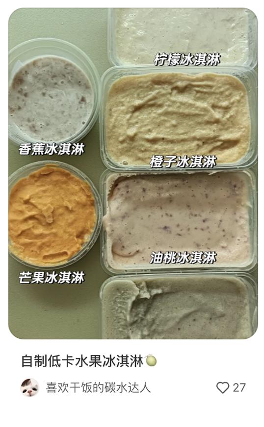 来源:小红书用户@六一的吃冰日记、@晓婵的料理、@小笛爱做饭(附教程)、@小红不喝白水做成酸奶冰淇淋