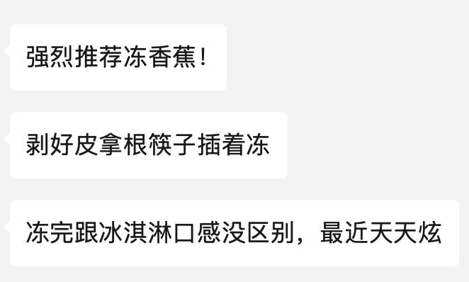 再说了,哪怕是超甜香蕉这种平常减肥期不太敢吃的,跟外边买的雪糕比,热量能高到哪去,饱腹感也比冰棍强不少!便利店冷冻柜里的雪糕会背刺你,你亲生亲手冻的无添加水果可不会!