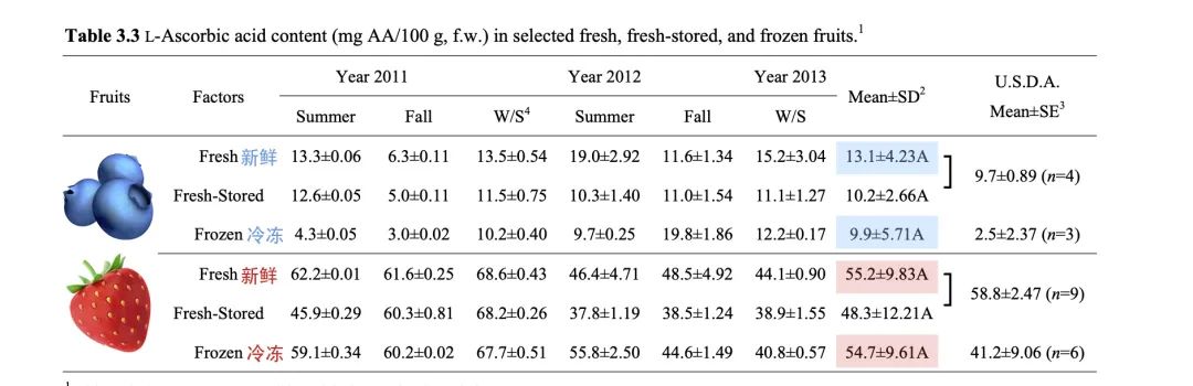 冷冻草莓的维生素C含量(54.7 mg/100g)与新鲜草莓(55.2 mg/100g)几乎相同。
