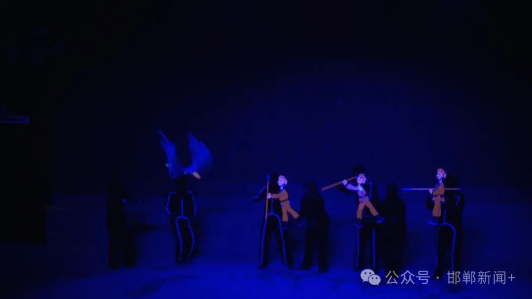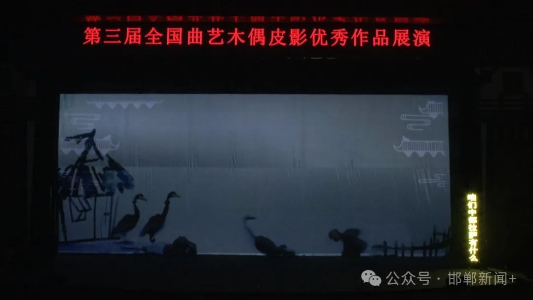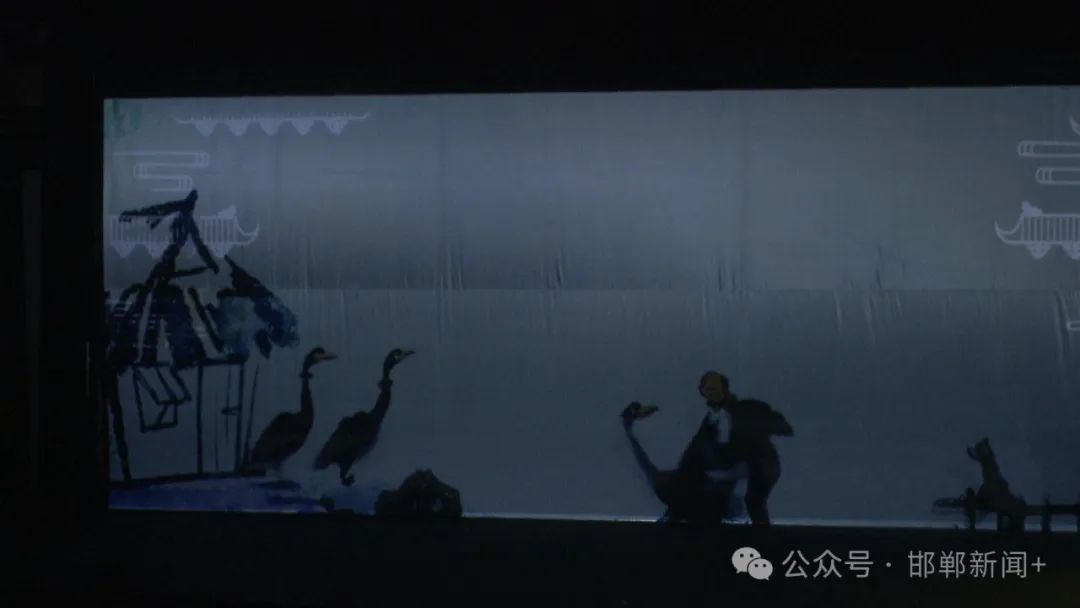 【同期声】湖南省木偶皮影艺术保护传承中心皮影展演团演员 黄维:这个戏讲述的是一个叫铜颈的鸬鹚,它从抓捕到逃离最后回归的故事,故事情节非常的生动有趣,并且还有一点小小的刺激,希望我们邯郸的观众能够喜欢。