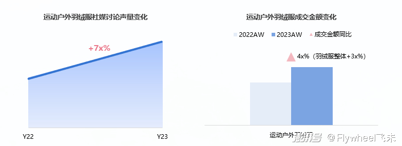 在购买行为上,羽绒服的购买频次和单次购买量均呈现出积极的同比增长趋势。在各大社交媒体平台上,关于运动户外羽绒服的讨论量同比显著增长,反映出消费者对于此类产品的高涨热情和期待,他们乐于在社交平台上分享种草对运动户外羽绒服的看法评价。在淘宝天猫平台上,运动户外羽绒服的销售增速更是高于羽绒服整体市场,显示出其细分市场的强劲竞争力。