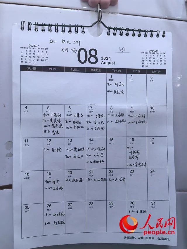 王佳佳办公桌旁的日历表上,工作安排已排到了8月30日,可她的生命却在8月7日戛然终止。人民网记者 王佩摄