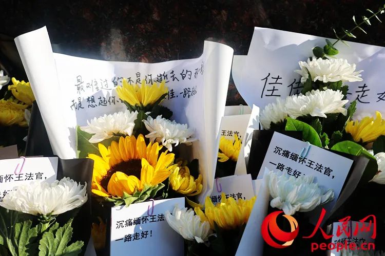 8月13日,王佳佳逝世第7天,她生前工作的郾城区人民法院门口被很多不知名的市民送上了寄托哀思的菊花。人民网记者 王佩摄