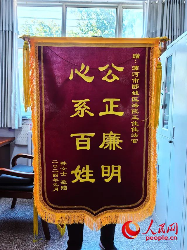 王佳佳办公室文件柜的顶部,放了很多连包装都没有打开的锦旗。“佳佳法官总说,把案子办好是法官分内之事,群众心里满意了,就是对我最大的褒奖。”书记员李源说。人民网记者 王佩摄
