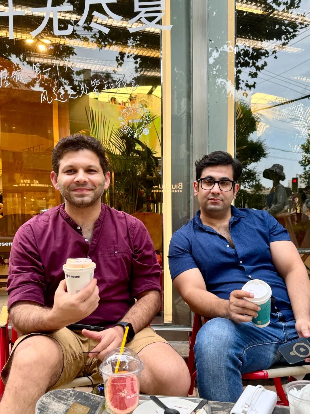 见到Salman的时候,他正在和朋友胡塞坐在安福路路口标志性的Plusone外面,眼前的桌面告诉我他们已经喝了不只一杯。