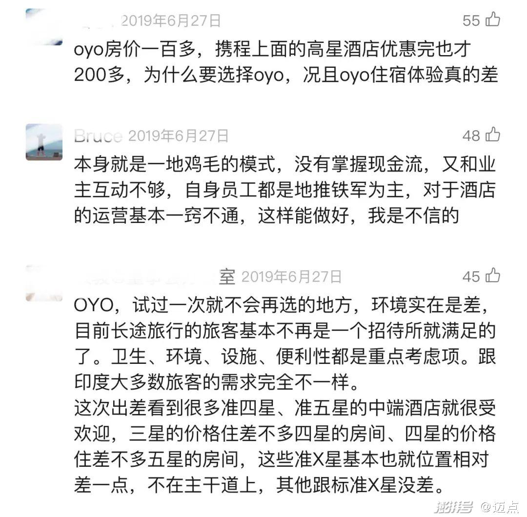 不过在这过程中,OYO在中国的口碑不断下滑。迈点发现,在2019年关于OYO的报道中,评论中反对的声音已经不小。