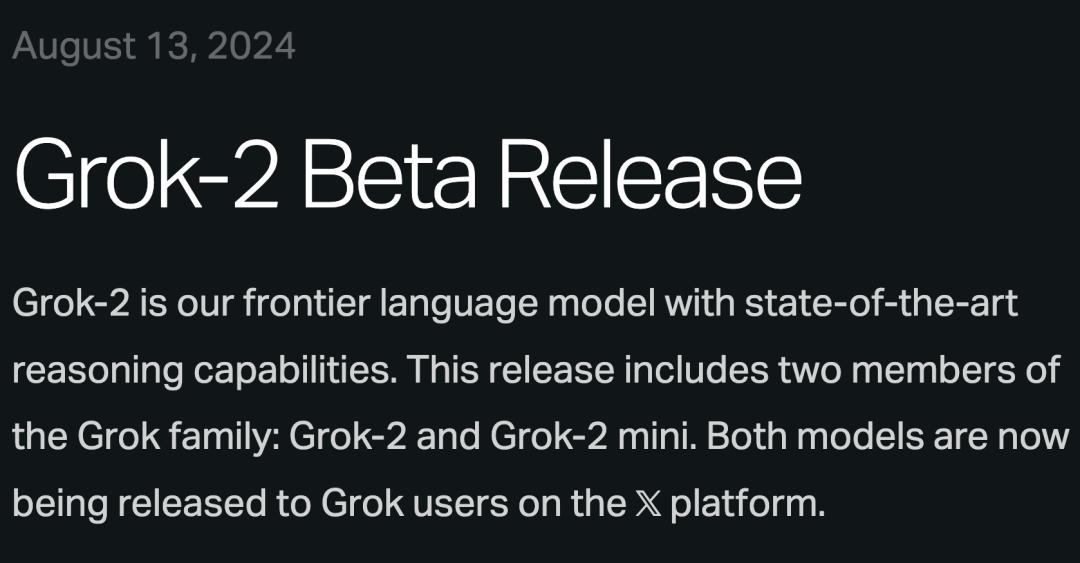 xAI还计划在本月稍晚时候,推出Grok-2两个版本的企业API。
