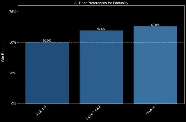 ▲Grok-1.5与Grok-2两个版本基于事实性的胜率比较
