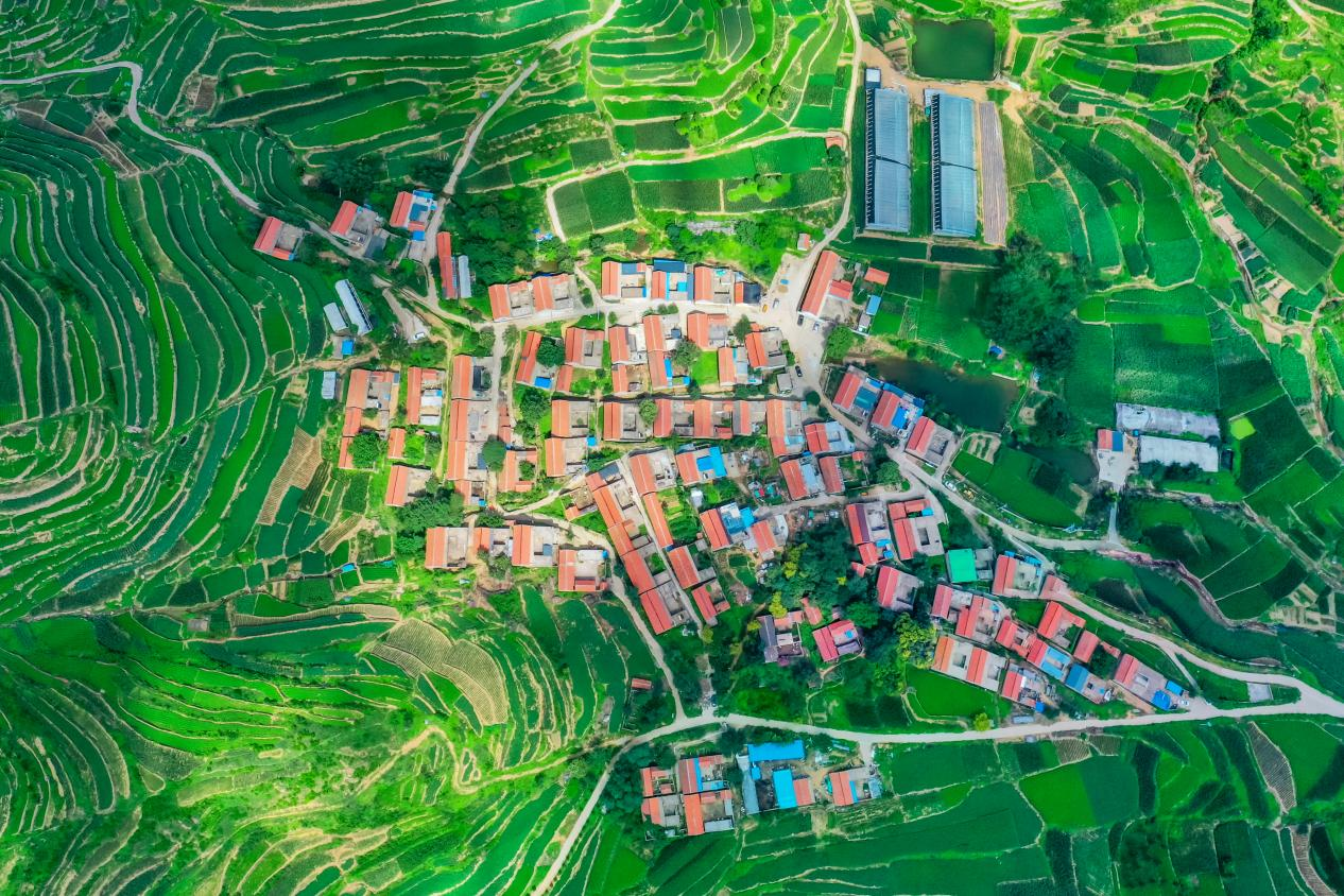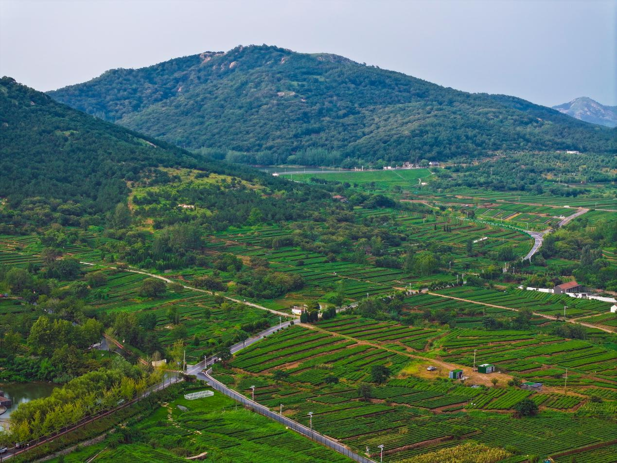 8月11日,俯瞰莒县九里晴川,村庄坐落在绿色梯田之间。陈光金 摄