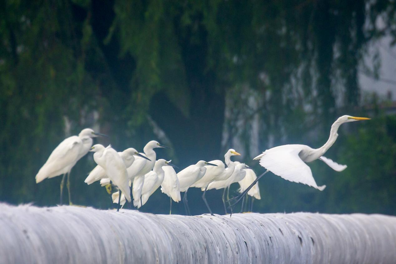 8月15日,五莲县洪凝河畔,水清草绿,引来白鹭嬉戏。王义全 摄