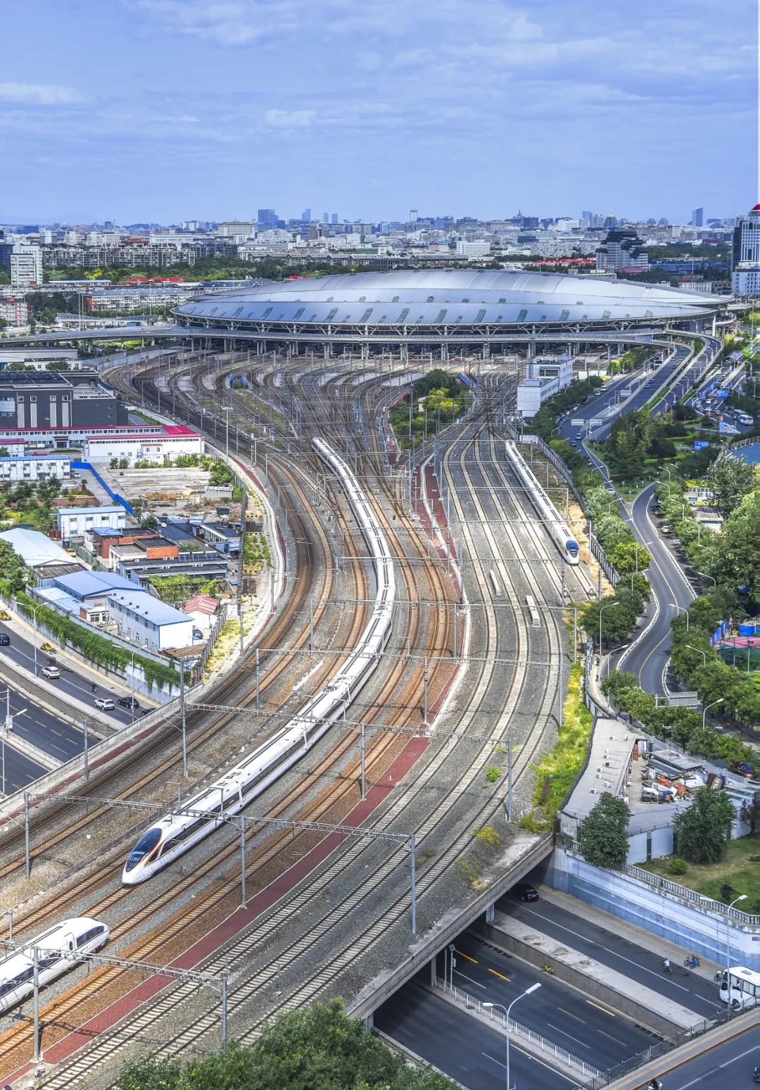 2017年9月起,复兴号动车组列车在京沪高铁上线运营,以时速350公里打造了世界高铁运营速度的新标杆。2021年6月,复兴号智能动车组在京沪高铁等线路集中亮相,车体设计更加科学、功能设施总体更加完善。如今,从上海到北京,最快4小时18分可达。