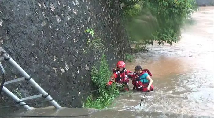 8月14日上午,南宁市出现强降雨,部分低洼地带出现积水现象。当天上午8时许,良庆区一名在菜地干农活的女子被突然上涨的河水困住,情况紧急。接到报警后,南宁市消防救援支队立即调派消防救援人员赶赴现场救援。
