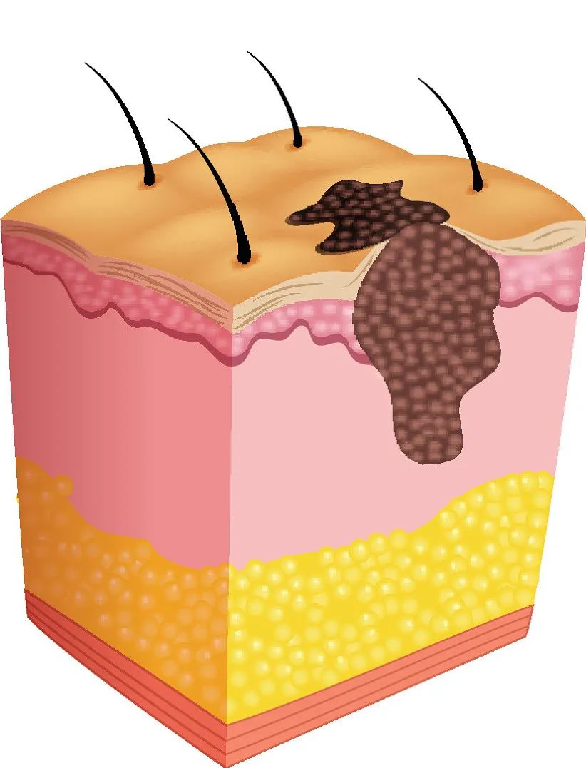 皮内痣 是成年人最常见的一类色素痣;可发生在任何部位,以头颈部最为常见;典型特征是可含有毛发。