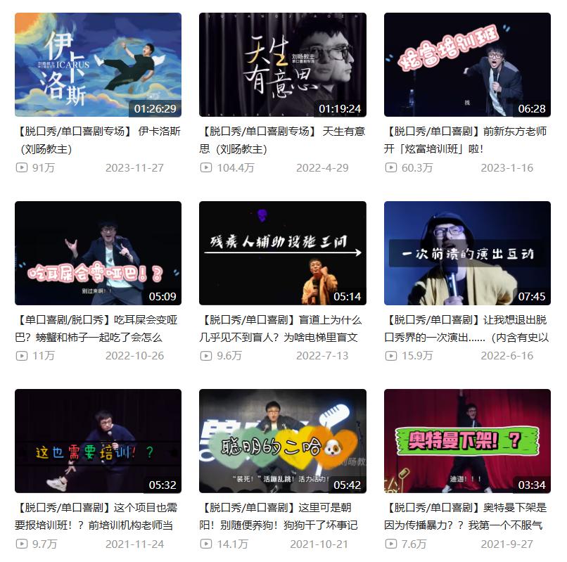 刘旸在B站上传自己的单口喜剧演出视频当然,单立人的影响力并没有因为创始人的变动而衰减。