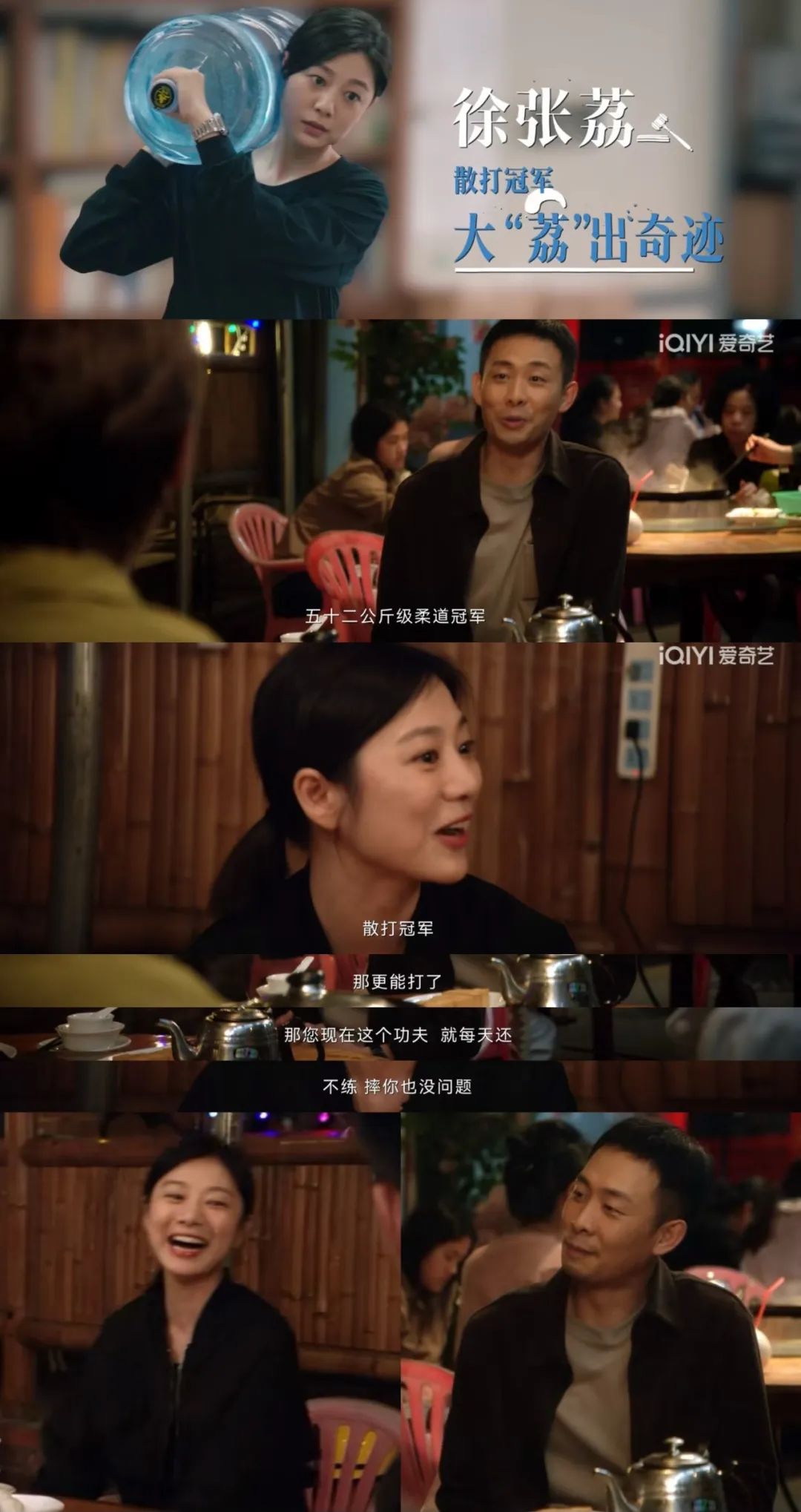 法警徐张荔(王真儿 饰),52公斤散打冠军(注意是散打不是柔道!)办公室换水担当,所谓“大荔出奇迹”,轻松摔雷旭没问题。