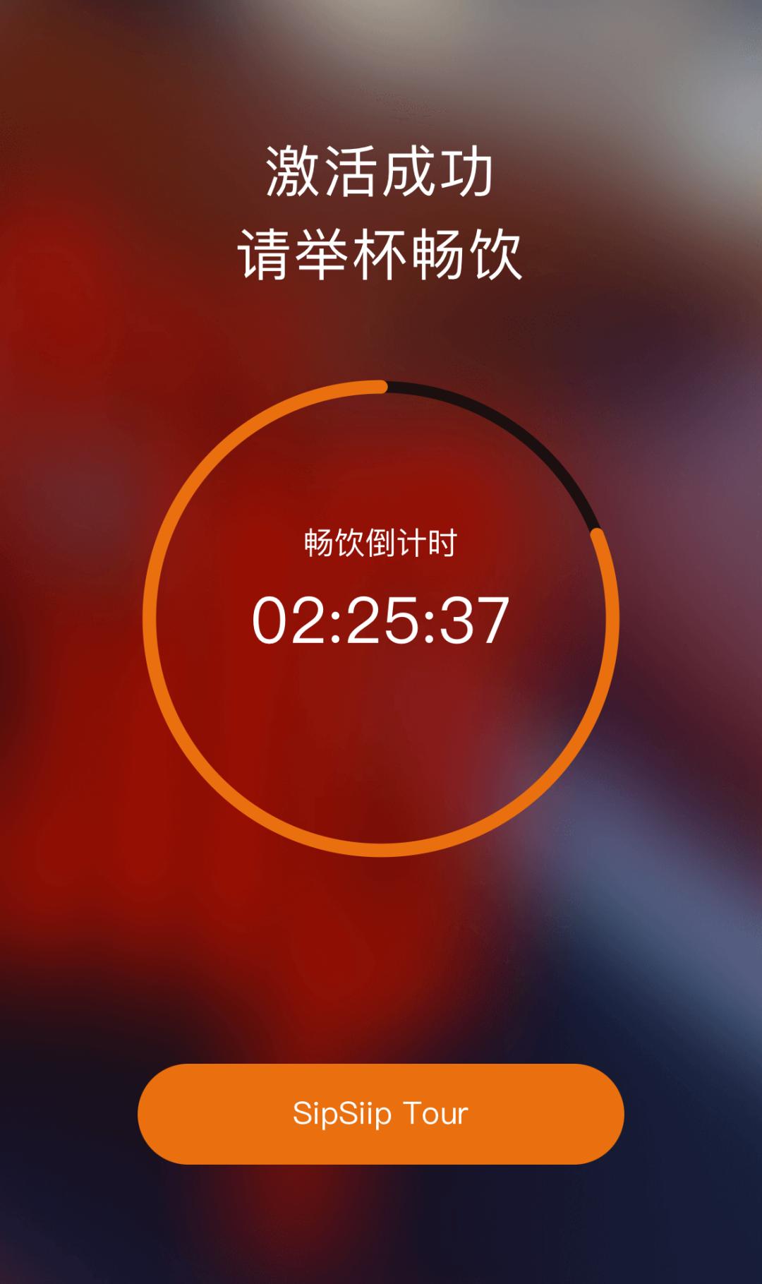扫一下店里随处可见的二维码,小程序上醒目的倒计时圆环就能实时显示出剩余的饮酒时间,以及已经品尝过的酒款和饮酒总量。时间一秒一秒在减少,看着自己的“个人战绩”,人会不自觉地生出一种参加比赛的竞技心和紧迫感。